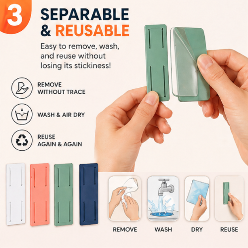 The slide design is convenient for you to fix and separate. The reusable acrylic gel allows you to clean multiple times while still maintaining the initial adhesion.