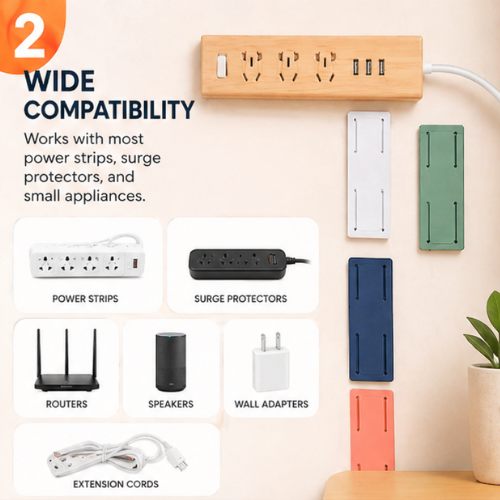 Specially designed for power strips, wireless routers, tissue boxes, adapters and remote controls, just install your power strip and say goodbye to clutter.